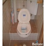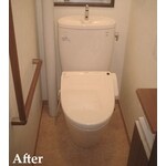 狭い空間の中での器具の配置に気を使いました。床上から空間を持たせて足元が邪魔にならない埋め込み型収納もポイントの一つです。手すりもリモコンも紙巻器も、全てお客様との綿密な打ち合わせの上、設置箇所を決定していきました。 工事内容 便器: TOTO ピュアレストEX ウォシュレット: TOTO アプリコットF4A アクセサリー: TOTO ワイド埋込収納