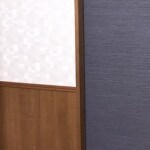 壁天井の壁紙の柄を変えただけで、光沢があり高級感がUPしました。さらに材質の違う板壁を腰高さで切替を付けたことで、空間にしまりが付き、落ち着いたお洒落な感じにまとまりました。