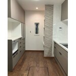 勝手口を無くした分、キッチンの明るさを確保するために縦すべり出し窓の取り付けを御提案。 斜めで使いづらかった勝手口横の壁面には、袖壁を造作してコンパクトなパントリーを造作することを併せてご提案。