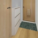 玄関と㍛ユニットバスの扉との間の間隔も狭かったので、シューズBOXを置けるスペースはありませんでした。