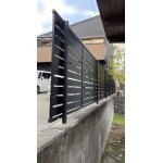YKKのルシアスフェンスF04型を設置させていただきました。表面はショコラウォールナット、裏面はカームブラックのお色をお選びいただきました。