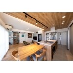 隣接していた洋室・和室を取り込み広々としたLDKへ変更。 リビング全体が見渡せるように、開放感のあるアイランドキッチンを提案しました。 止まり木をイメージした鳥籠の造作棚をキッチンから見える位置に新設し、安心して作業ができるようになりました。
