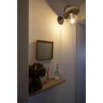 ログハウスのような木の雰囲気がお好みの施主様。こだわりのフローリングに合わせて土間の框は【木框】へ変更しました。 空間のアクセントに黒のアイアンが木の質感とマッチするブラケットライトを提案しました。