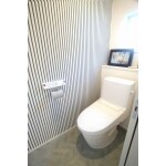 扉を開けた瞬間に可愛いアクセントクロスが目を惹くトイレです。