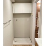 洗濯機置き場の上部は、備え付けの収納がありませんでした。