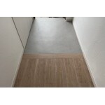 タイル貼りだったのを左官で目地を埋め、その上をフロアタイルで仕上げました。 見た目もすっきりとし、かっこいい空間になりました!