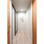 すっきりとグレイッシュで都会的な印象の廊下