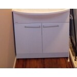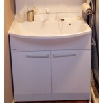 本体キャビネットは奥行き420mmのコンパクト設計ながら、洗面ボールが広く、快適に使用できる洗面をご提案させていただきました。 洗面ボールは人造大理石でできているので衝撃に強く割れにくいです。 コンパクトで水はねしにくいシングルレバーシャワーは、水栓のシャワーヘッドが引き出せ、リフトアップも可能です。 ミラー裏はたっぷり収納ができるので、洗面回りもすっきりします。 収納扉は開閉がしやすい幅広タイプの取っ手で、タオルをかけることもできます。 木巾木はそのままで、クッションフロアとクロスも交換しました。重厚感のあるクッションフロアと真っ白のクロスで新しい空間に生まれ変わりました。