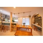 キッチンからダイニングテーブルまでダクトレールを取付してインテリアも楽しめるように提案。