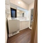 T社のオクターブを設置いたしました。 洗面台のサイズを大きくしたので、その分収納スペースが増えています。また上部に吊戸棚・洗濯機横に棚を設置したことで、より収納できるようになりました。 洗濯機パンも洗面所の内装工事に伴い交換したことで、使いやすい高さになり、また排水口まわりのお掃除も簡単に出来るようになりました。