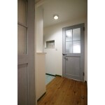 お家の入り口からアンティークな雰囲気と柔らかな色合いの関で、お出迎え。「いってらっしゃい」と「いってきます」の声が弾むような爽やかな玄関へ空間へ。