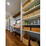 リフォーム前のキッチン吊戸部分の収納はパントリーを造作して確保。横にちょっとした机も造作してキッチン裏での作業もスムーズに。