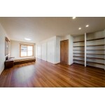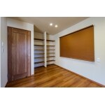 作業スペースは別に移し、造作収納棚を設置しました。カーテンはロールスクリーンに変更してお部屋がすっきり見えます。