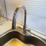 左側水栓の吐水口の高さが低く、大きな鍋を洗ったりがしにくく、使い勝手の悪さを感じておられましたので、追加で交換のご依頼がありました。