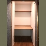 手前の棚スペースの棚も、押入の棚もそのままに、壁・天井クロスを貼り替えました。床は絨毯が敷かれていましたが、そちらは取外し、きれいにクリーニングをし、フローリング床として再生させています。