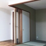 今回のリフォームの雰囲気を大きく作用するお部屋の一つである和室の畳・壁紙・襖の色や質感にも、こだわりを持って、素材からお選びいただきました。さり気なく全体のメインカラーであるグリーンを引き立てる配色になったと思います。防火性能準不燃・防カビの壁クロスを使用し、畳は高断熱仕様の半帖畳をご提案させていただきました。
