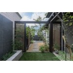 全てをやりかえるのではなく、ガーデンルームは残し、利用価値の上がるよう+Gルーフを延長し、色味を合わせながら上手く周りと融合させました。あまり閉鎖感の出ないように格子やフレーム、緑をふんだんに使用し、奥行き感のある、落ち着いたお庭をご提案。隣地を背面にウォールを設置。緑に囲まれた癒しのプライベート空間に仕上げました。自然石調のタイルが重厚感と存在感を発揮し、+Gルーフがラグジュアリーなテラス空間を演出。テラス屋根はLIXILの+Gルーフを設置。ダウンライトを取り付けナイトガーデンも楽しめます。