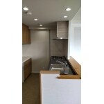 壁と吊戸棚を撤去することによりリビングとの一体感が生まれました。カップボードはPanasonicです。