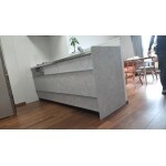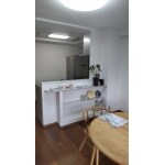 吊戸棚・垂れ壁を撤去して明るいキッチンになりました。もともとあったカウンター棚を利用して造作棚を施工しました。