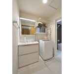 毎日気持ちよく使える清潔感が漂う白を基調とした洗面室