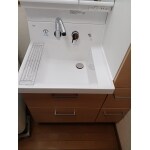 トールキャビネットを追加頂く事により収納量がプラスされます。洗面台の奥行も深くなり洗濯機の出幅と同じになりました。