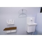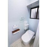 トイレ室がコンパクトなので そのままではアラウーノの設置が難しい状況でした。 今回は全面改修をしましたので、トイレ室を少し広げることにしました。 壁はタイルを落とし、クロス仕上げ 床はバリアフリーにしています。 また、ガタついていた建具も交換しましたので 見違えるトイレ室になりました。