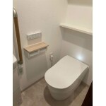 お施主様がTOTOのネオレストLSを取付ご希望でしたので、商品はネオレストLSをベースに施工させていただきました。 トイレ施工時に内装の模様替えもご提案させていただき、新しいトイレの空間にさせていただきました。