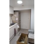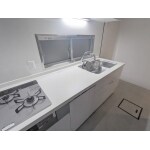 タイル貼りだったキッチンにキッチンパネルを貼ってお掃除しやすくなりました。