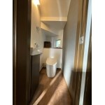 傷みの有った床下地を含めやり替えさせて頂き、床はクッションフロアに貼替させて頂きました。 手洗いも全体の色味に合せ統一感を持たせて、落ち着きの有る空間となりました。