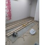 右手にはフィッティングルーム用のカーテンを下げるレールも取り付けています。このあとこのスペースにはテーブルと椅子が置かれる予定らしいので、少しでも休まる空間になれば幸いです。
