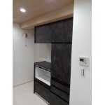 ロッシュチャコール面材で都会的な印象です。床材・壁材が明るいので重くならずに配置頂いています。