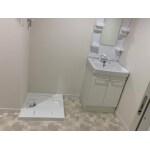 床は防水性の高いクッションフロアに、壁はクロス張りに変更させていただきました。 白を基調とした設備や内装で、窓がなくても明るさを感じる空間となりました。