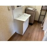 お湯と水が分かれているタイプの水栓でした。 洗面所床の腐食やきしみがあるので補修もご希望でした。