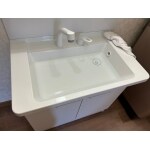 実際に使う人のこと考えられた設計の洗面をご提案させていただきました。 洗面ボウルは泡や髪がスイスイ流れ、気になる汚れもたまりにくい設計です。ボウルの脇には濡らしたくないものを置くドライエリアとコップやせっけんなど濡れたものを置くセミウェットエリアもあり、使う人のことを考えられています。