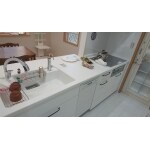 お値段を抑えるためにキッチンはPanasonicLクラス。カップボードはPanasonicラクシーナです。