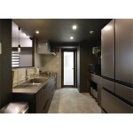 LDKのアクセントウォールはエコカラットをご提案。コーニス照明を採用して、ドラマチックなライティングを演出。 寝室の中に、集中して作業できる畳の「おこもり空間」を提案。 キッチンとリビングカウンターとの間の開口部をスクエアにカットして、ピクチャーウィンドウの効果を演出。 洗面室とウォークインクローゼットの出入り口を引き戸にして、ふだんはオープンにして使えるように動線を計画。これにより、浴室で乾燥した洗濯物は、効率よくクローゼットに収納できるように提案。 洗濯機置き場を変更して、ホテルライクな洗面カウンターの設置を提案。 浴室を1218サイズから1416サイズにして、より広々としたシステムバスへの変更を提案。
