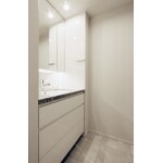 水回りの壁はメンテナンスがしやすく、汚れや傷に強い素材を使いたいとのご要望をいただきました。 継ぎ目のない、お手入れしやすい素材としてキッチンパネルをご提案させていただきました。