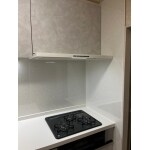 飛び出していたレンジフードも吊り戸棚の位置まで収納され、全体的にスッキリとした印象になりました。