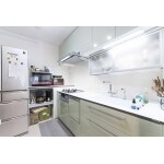 収納力を補うためにおいていた棚の影響でコンロの半分が塞がれている状態でした。また、食洗機を置いていたことでシンクもスペースが小さくなっていました。今回のリフォームでは収納力を上げて、使い勝手を改善することを目的に、キッチンの幅をあえて狭めて、キッチン横にコーナーキャビネットを設置をご提案しました。