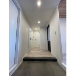 靴箱が玄関の大半を占めていたため暗く圧迫感が出ていました。今回は全面リフォームということで、居室一部を使用して壁の中に靴箱を設置しました。また、キッチンへはロールスクリーンで仕切り明るさを確保しました。