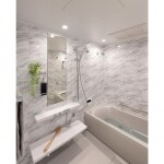 浴室はショールームで商品を選定していただきました。 浴槽はエレノアグレー、床はライツグレー、浴室もグレイッシュカラーで統一した上品な空間です。 一日の疲れを肩湯・楽湯で癒していただき、やすらぎを堪能していただければと思います。また、オプションで床ワイパー洗浄をご採用いただきました。 こちらの機能を活用いただくことで、お掃除の頻度が軽減され、家事の負担の軽減につながればと思います。