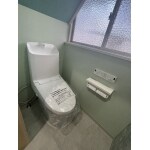 リクシルトイレ アメージュZA シャワートイレをご提案させていただきました。 このトイレはフチレス形状・アクアセラミック仕様でお掃除ラクラクな衛生陶器です。 快適にご使用いただけるようにタイル張りだった壁・床をクロスやクッションフロアに変更し、できるだけ温度差が少なくなるよう工夫しました。