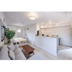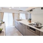 間取りを3LDKから2LDKに変更し、スムーズな生活動線と、LDK全体にバルコニーからの光が入る明るい住まいへリノベーションするご提案をさせていただきました。 マンションの床が直床のため、配管の移動が難しく、当初は壁付けキッチンの予定でしたが、キッチンの床を上げることで配管の問題を解消。使われていない洋室をLDKに取り込み回遊動線を実現した、対面キッチンプランです。