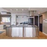 キッチンは壁を取り払い、設備を一新。 キッチンはお客様こだわりのオールステンレスでオーダーメイド。 色違いのペンダント証明を並べることで大人の遊び心も演出。 デザインと機能へのこだわりを存分に満たした、キッチンと空間をご提案しました。