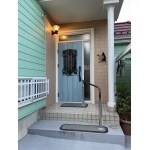YKKAPドアリモでは様々なデザインの玄関ドアを取り揃えていますので、シンプルなデザインはもちろんこだわりのあるデザインも選択することができます。鍵は便利で防犯性が高いポケットキータイプのものをご提案させて頂きました。ランマ・袖部分は複層ガラスで防犯、断熱機能共に上がりました。