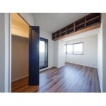マンション特有の梁を利用して吊棚を設置。お気に入りのアイテムを置いて、小粋なインテリア装飾も楽しめます。