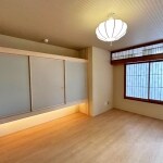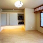 お父様お気に入りの書院風窓の座敷飾りの趣を残し、お部屋を広げました。上部に備えられた欄間は、そのままの形状を残しました。壁はクロスではなく、珪藻土で趣を出しております。