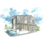 実際にどんなリフォームが出来るのが分からなかったそうで、提案して欲しいとの事でしたのでまずはイメージパースを作りました。 元々の外観が格好良いデザインでしたので、その雰囲気を残せるようにプランニングしました。 特にサイクルポートは玄関ポーチのパーゴラと雰囲気が合うように、同系色の塗装をしたエコアコールウッドで計画しました。 また、パーゴラの水が溜まる問題は、雰囲気を残すため屋根の部分だけ作り直す計画に。サイクルポートでも使用した腐食に強いエコアコールウッドを使い、水勾配の取れる屋根に作り変えました。 臨時駐車場は、花壇のあったスペースを無くして、既存のタイルと似たものを利用しました。 今回のように既存の雰囲気を大切にしたり、既製品を使わず造作で作る外構工事はイメージしにくいことが多いのですが、イメージパースを中心に上手くご提案が出来たと思います。
