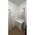 脱衣場全体のクッションフロア・クロスの張り替え工事をおこない、とても清潔感のある洗面脱衣場になりました。