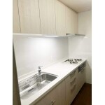 L社のシエラI型を設置致しました。 清掃性と収納の出し入れのしやすさにこだわって、仕様選択しており、ワークトップは人工大理石仕様、ウォールキャビネットはダウンウォール付になっています。
